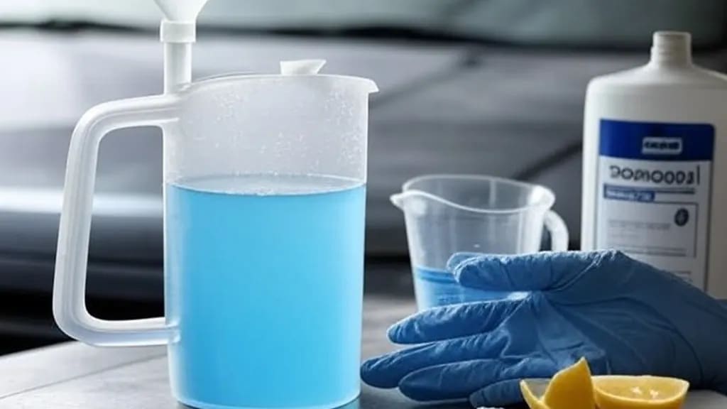 Podstawowy wariant to woda destylowana połączona z izopropanolem oraz niewielką ilością środka myjącego. Mieszankę warto przygotować w osobnym pojemniku, a dopiero potem wlać do zbiorniczka, co ułatwia kontrolę proporcji i ogranicza pienienie. Detergent powinien być dodatkiem, nie bazą, bo to alkohol i woda odpowiadają za pracę w zimie.